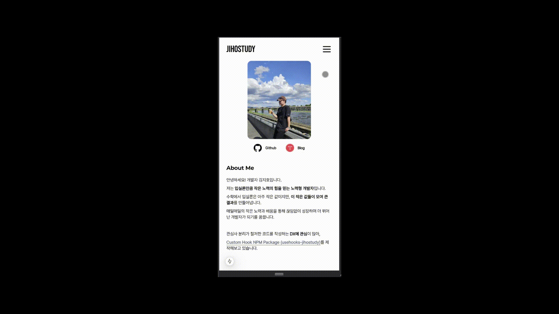 포토폴리오 프로젝트에서, 커스텀 훅 라이브러리인 `usehooks-ts`를 사용하여 헤더의 햄버거 버튼을 구현하고 있었습니다.